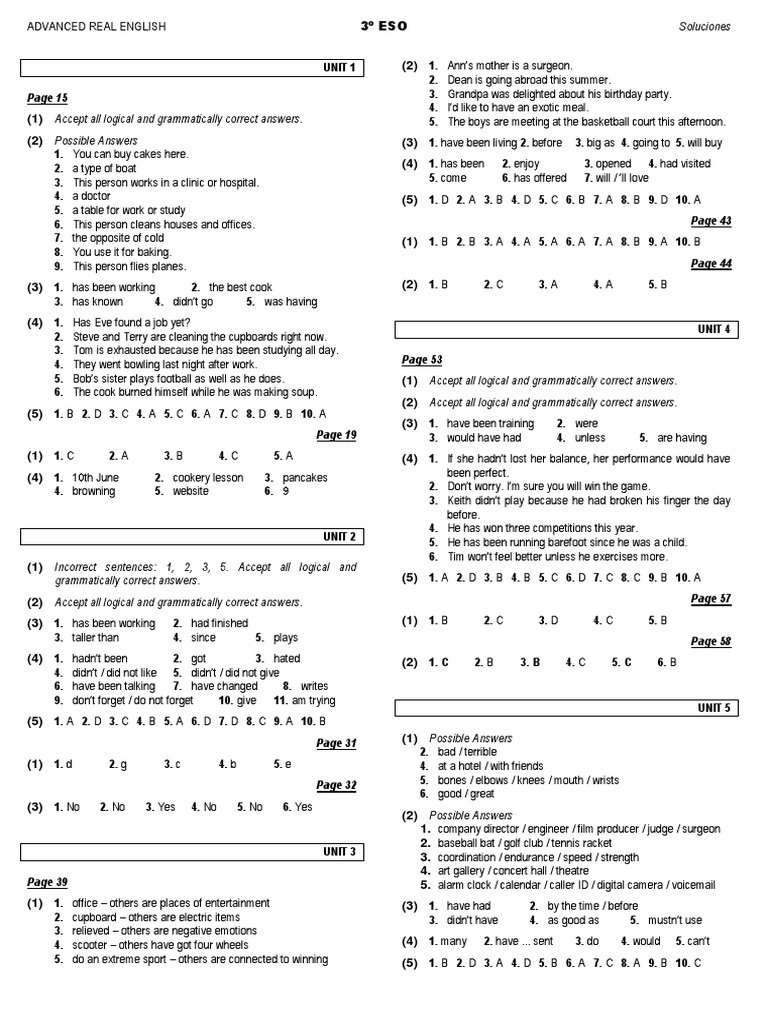 Se incluye también todos los ejercicios resueltos y las soluciones en el solucionario del libro para descargar en pdf tanto del student book y del workbook. Recomendamos encarecidamente a los padres o tutores el uso de este material. Examenes ingles 4 eso burlington books dejamos a vuestra disposición una recopilación de examenes para ingles 4 eso de la editorial burlington books. Inglés 3 eso burlington books soluciones 2020 / 2021 por rocky 28 de diciembre de 2020 3 eso , inglés 0 comentarios ejercicios resueltos, resúmenes, ejemplos, actividades resueltas y soluciones de inglés para 3 de la eso burlington books serie english in use. El guadalete lo cruzaron jaime y pablo en piragua. Mi abuela nos compra muchas chucheras. En medina sidonia hay un castillo antiguo. Were shown (5) 1.have you been travelling 2.cant 3.would have seen 4.had been 5.would 6.to take 7.was 8.leaves 9.sleeping 10. El reloj est atrasado desde el mes pasado 7. La carpeta del profesor es de color rojo. En la orquesta nacional hay muchos msicos. Wasnt / was not thrown out (4) 1. Añadimos para descargar en pdf gratis una recopilación de examenes y evaluaciones de lengua 4 primaria anaya aprender es crecer junto con sus soluciones.